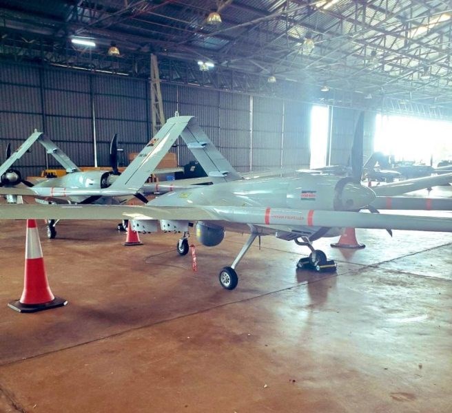 Kenya's newly acquired Bayraktar TB2 drones, equipped with advanced surveillance and precision strike capabilities, pictured inside a military hangar. The acquisition marks a significant leap in Kenya’s counterterrorism and defense strategy. Courtesy