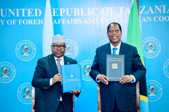 Mogadishu (HOL) – Somali Minister of Foreign Affairs and International Cooperation, Ahmed Moallim Fiqi, signed three strategic agreements with Tanzanian officials on Wednesday to enhance collaboration in security, cultural development, and the exchange of prisoners.