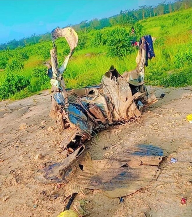 Wreckage of the vehicle destroyed by a roadside bomb along the Ijara–Bodhai road in Garissa County, northeastern Kenya, on July 13, 2025. Two civilians were killed in the explosion. (Photo: Handout)