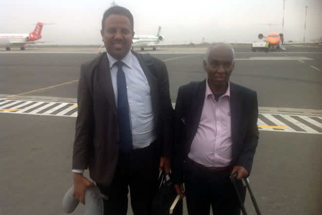 Dr. Mohamed Abbas and Dr. Mohamed Jama Salad at Jomo Kenyatta International Airport in Nairobi, Kenya