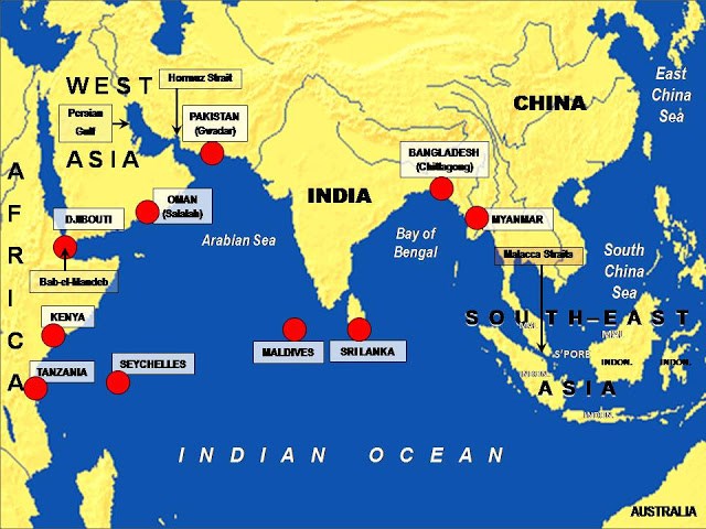 China’s Sting of Pearls in Indian Ocean. (Map Courtesy CIMSEC)