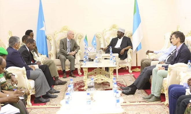 Senior representatives from African Union, the Intergovernmental Authority on Development and the UN meeting with Ahmed M. Islam (Madobe), Kismayo, Jubaland