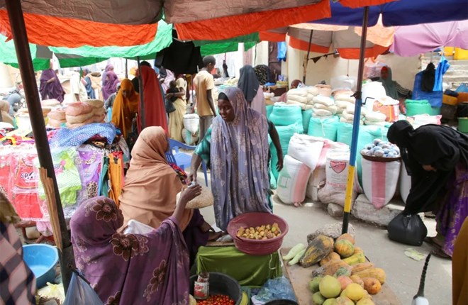 The grain market in the Somali capital, Mogadishu, on 7 April 2024. Decades of conflict and drought have left Somalia with one of the world's most intractable hunger crises. Arab World Press via Reuters Connect