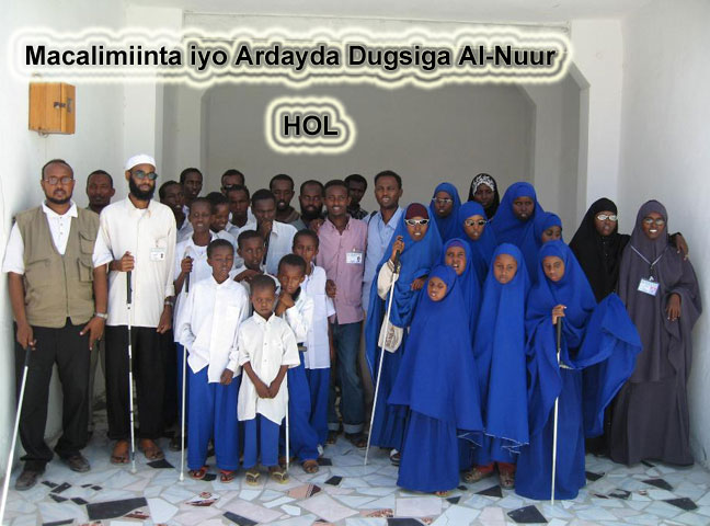 Ugu dambeyntiina Dugsiga Al-Nuur waa Dugsigii ugu horeeyay oo loo aas aasay dadka indhaha la', waxaana dhidibada u aasay aqoonyahanno aan qudhooda indhaha wax ka arki karin, kuwaasi oo dalka dibaddiisa wax lagu soo baray. sida ay sheegaan maamulayaasha dugsigan ma jiraan kaalmo ay ka helaan dad shisheeye, marka laga reebo Jaaliyad Soomaaliyeed oo ku dhaqan magaalada Brimingham ee dalka Ingiriiska iyo weliba Shirkado iyo Hay'ado Wadani ah oo ka howlgala gudaha dalka Soomaaliya, kuwaasi oo kala ah Hormuud Telecom, Al-Towba, Mu’asasada Imaamu Shaafi, Jubba Airways Telecom Somalia, Muslim Aid-UK iyo shakhsiyaad kheyr jeclayaal ah  oo Soomaaliyeed.