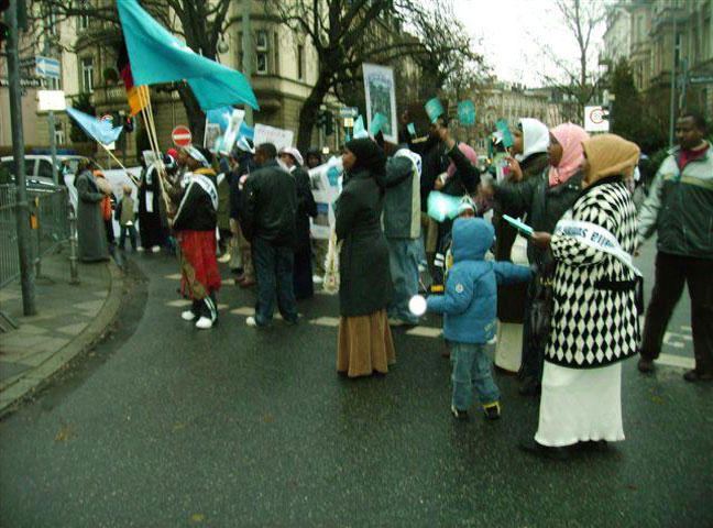 Dadkani ayaa waxay ku hor banaanbaxeen Safaaradaha Mareykanka iyo Itoobiya ee dalka Jarmalka , iyagoo ku luuqeynayay Heesihii la qaadi jiray xiligii uu socday dagaalkii dhexmaray Soomaaliya iyo Itoobiya.