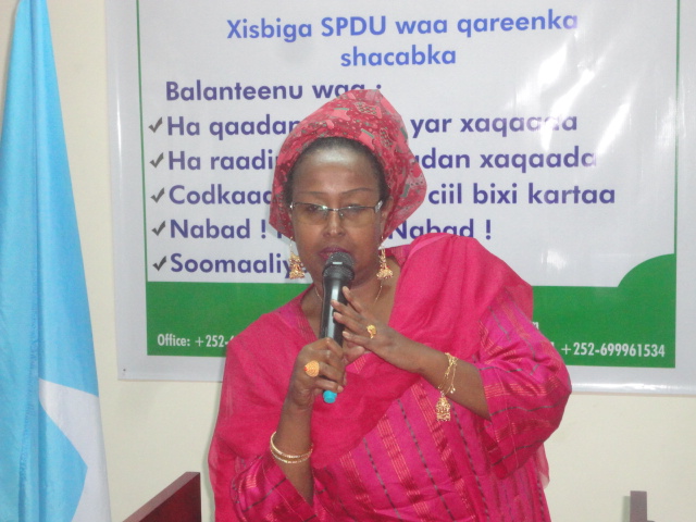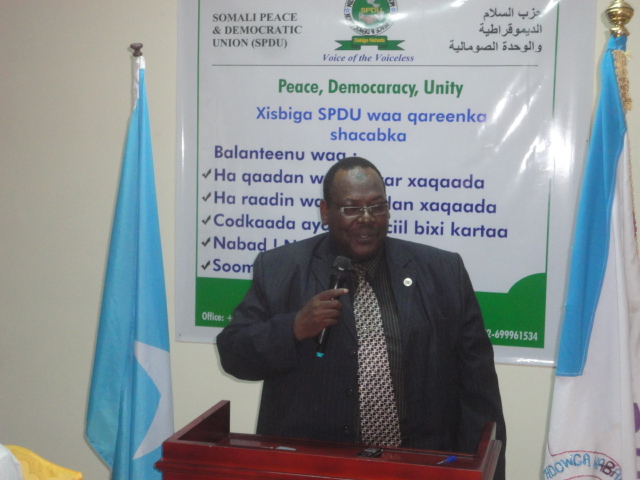 “Qaab-dhismeedka xisbiga waa gole heer Qaran, wuxuuna ka kooban yahay hoggaan leh gole dhexe iyo guddi fulin, wuxuuna leeyahay laamo heer gobol iyo heer degmo ah, SPDU maaha xisbi qabiil iyo xisbi goboleed waa xisbi ay ku jiraan dadka Soomaaliyeed oo dhan, kuna shaqeeya mabaadii’ u gaar ah oo ku dhisan nabad, caddaalad iyo horumar, ma ahan xisbi hubeysan balse waa mucaarad u taagan wax toosin,” ayuu yiri xoghayaha guud ee SPDU.