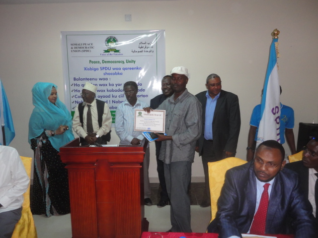 Xoghayaha guud ee xisbiga Nabada iyo Dimoqraadiyadda (SPDU), C/salaan Maxamed Siyaad oo hadal ku furay kulanka ayaa ka sheekeeyay marxaladdii uu soo maray xisbiga, isagoo xusay in xisbigan lagu aasaasay sannadkii 2010 magaalada Bermingham oo dalka Ingiriisa isla markaana loo soo raray Muqdisho sannadkii 2011-kii.
