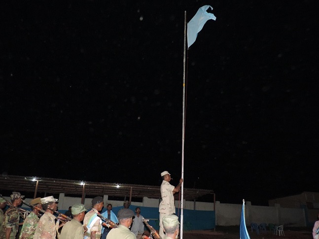 Ugu danbeyn, saacadu markay ahayd abaare 12:00 habeenimo ayay ciidamo ka tirsan kuwa maamulka Jubba waxay saareen calanka Jamhuuriyadda Soomaaliya, iyadoo xilligii calanka la saarayay uu jawigu ahaa mid aad u dagan islamarkaana dadkii goobta ku sugnaa ay muujinayeen dareen iyo xushmad gaar ah oo ay u hayaan calanka Soomaaliyeed.