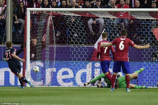 Markii la isugu soo laabtay qaybtii labaad ee cayaarta ayay kooxda Bayern Munich waxay qaybtii laadad u muuqday goolal ku beegtay goosha kooxda Atletico Madrid inkastoo gool-hayahooda Oblak uu ka difaacay shabaqa.
