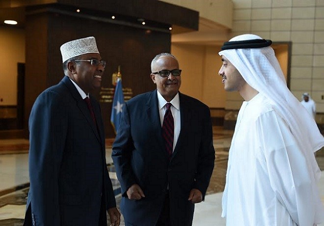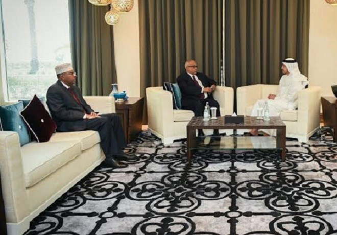 Khamiis, Abriil 28, 2016 (HOL) — Wasiirka Arrimaha Dibadda Somalia, C/salaan Cumar Hadliye oo booqsho ku joogay Maalmahaan waddanka Isu-tagga Imaaraadka Carabta, ayaa la Kulmay Wasiirka Arrimaha Dibadda ee Imaaraadka Carbta, Sheikh Abadalla Bin Zayid Al Nahyan.