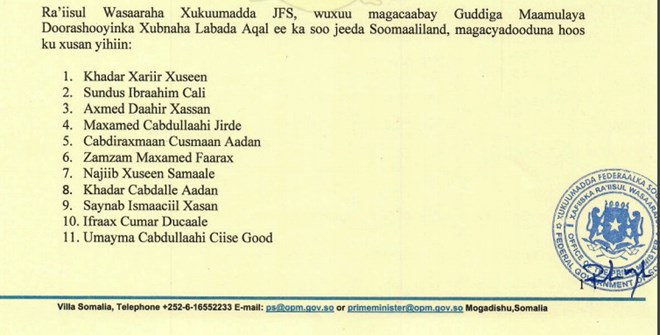 newsinsideGuddigan oo ka kooban guud ahaan 11 xubnood ayaa intooda badan la sheegay in ay ka tirsan yihiin xafiisyada Wasaarraddaha kala duwan ee dowladda.