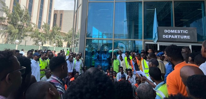 Talaado, November 11, 2025 (HOL) - Shaqaalaha ka howl-gala garoonka caalamiga ah ee Aden Cadde ee magaalada Muqdisho ayaa maanta sameeyay shaqo joojin, iyagoo ka cabanaya go’aanka shirkadda Favori ee maamusha garoonka oo dhowaan shaqada ka joojisay dhowr ka mid ah shaqaalahooda.