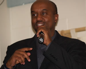 Muxyadiin Axmed oo ah Majaajiliiste Soomaaliyeed kuna shaacireeyo afafka Ingriiska iyo Soomaaligaba.