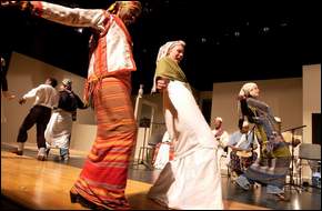 Ilays, a group of Somali multicultural artists, shared native songs, dances and dress with the students of Granville High School and Granville Middle School on Monday. It was part of the Midwest World Fest, a cultural concert series that aims to foster an understanding of and appreciation for global uniqueness and differences. "I thought it was really cool," said Ross Lemmon, a 16-year old Granville High School junior. "It's important for us to get a piece of other cultures." Ilays, which means "light" in English, is a 7-member group comprised of writers, dancers, actors, singers and instrumental musicians. Using an energetic mix of vibrant music, dance, poetry and stories, the group seeks to educate American students on the Somali culture, said member Ali Kusow, who plays the oud, a traditional Middle-Eastern lute. advertisements "We are, in a sense, a peaceful society," he told the crowd of students. "May peace be upon all of us, the human race." |