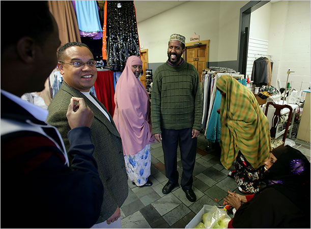 MINNEAPOLIS — Keith Ellison, the Democratic candidate for Congress here, strode among the stalls of exotically printed fabric, telephone cards and sweet tea at a Somali mall, shaking hands with his fellow Muslims.