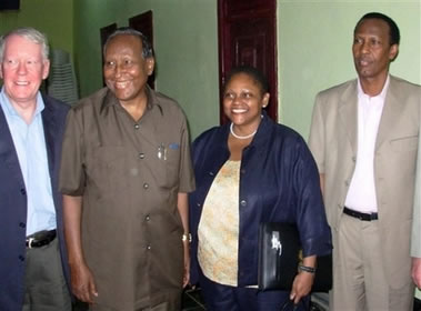| U.S. Ambassador to Kenya M.Ranneberger, President Abdullahi Yusuf, U.S. Assistant Secretary of State for African Affairs Jendayi Frazer & PM Ali Mohamed Gedi, (AP Photo/Mohamed Abdulle Siidi) |