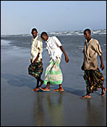 Safe now: Somali refugees walked on a beach in Yemen after a 36-hour boat voyage from Somalia in October. KHALED ABDULLAH/REUTERS/NEWSCOM