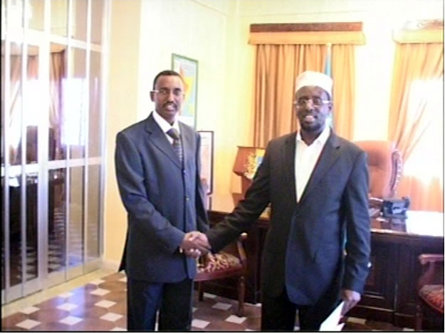 Ambassador Dayib Doubad  Robleh, Republic of Djibouti’s new ambassador to Somalia submitted his credentials on Sunday November 1, 2009 to Somalia’s president, Sharif Sheikh Ahmed.