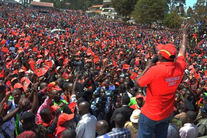 President Uhuru Kenyatta and his deputy William Ruto took their campaigns to three counties in Nyanza and Rift Valley regions on Friday where they urged voters to come out in large numbers on August 8 and give Jubilee an overwhelming victory.