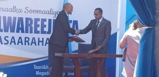 MOGADISHU (HOL) - Mohamed Hussein Roble has officially taken charge as new Prime Minister following a handover ceremony Sunday.