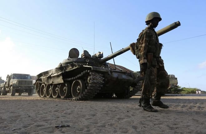 FILE PHOTO: Somalia’s army soldiers and peacekeepers from AMISOM enter the town of Barawe. (Getty)