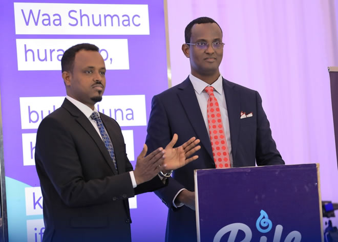 Deputy Minister of the Ministry of Information of the Federal Government of Somalia, Abdirahman Yusuf Al-Adala unveiling Bile TV alongside Abdirashid Mohamed Siraj, who is the Chairman of the Executive Board