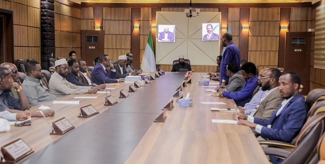 Kismayo (HOL) - Jubbaland's President Ahmed Madobe chaired a regional cabinet meeting on Friday to discuss security and road management in the Jubbaland region, located in southern Somalia near the border with Kenya. The council of ministers discussed the ongoing military offensive by the Somali and Jubbaland forces against Al-Shabaab fighters.