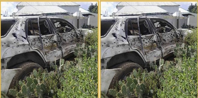 The explosion occurred in Jabad Geelle village in the Elasha Biyaha area, about 15 kilometers south of the capital. The victims were identified as Ali Kadawe and Mohamed Omar. The injured guards were taken to a Mogadishu hospital, authorities said.