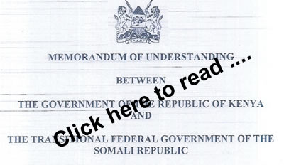 The story of Somalia ’s Minister of Planning and International Cooperation Mr. Abdirahman Abdishakur Warsame signing a memorandum of understanding (MOE) with Kenya ’s Minister of Foreign Affairs Moses Wetangula  on a historically contested maritime border issue caught many Somalis and Somalia observers by surprise.  At a time when piracy at the Indian Ocean was the issue of concern in the West, Somalis across the globe were busy studying the MOE between Somalia and Kenya and were wondering the extent of damage if any to Somalia’s maritime border dispute with Kenya. The shocker came mainly due to the fact that the Government of National Unity (GNU) of Somalia who is yet to establish itself firmly on the ground, administratively and institutionally, and is only few months old, is tackling head on and some fear carelessly, complex international issues that it clearly lacks understanding, capacity and stature to come to the negotiating table as an equal partner.