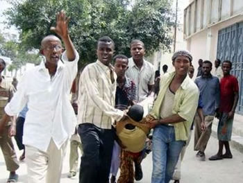One older woman, crying over her son, sat down alongside him. His wounds were serious. She was talking to him, but his only answer was his breathing.